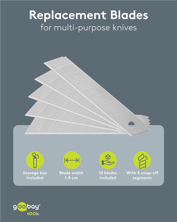 Goobay náhradné ostrie/čepele pre viacúčelový nôž, blister - 10ks/balenie - 18 mm